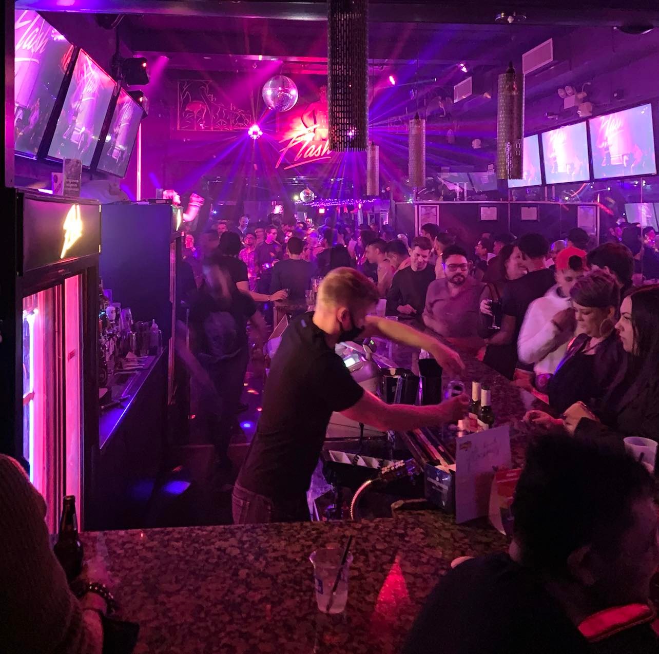 During Covid, Flash reinvented itself as a general purpose venue. They are now open to all. They added a pile of video screens, upgraded their sound and light system, and made a pile of general renovations. It is a clean large bar offers music videos, Drag race viewing parties, Drag shows, Dance parties and special events. They also give back by offering their space for fund-raisers and conducting charity bingo every week. It's right in the centre of Toronto's Church-Wellesley Village, so once you're there, you can visit several of the bars. Saturday Latin parties are their premiere event followed by the FML party every Monday night (yeah, Monday). Staff are friendly with 2 bars to serve you. Dancing on the stage is allowed, but don't climb the stripper pole or you may be asked to leave.